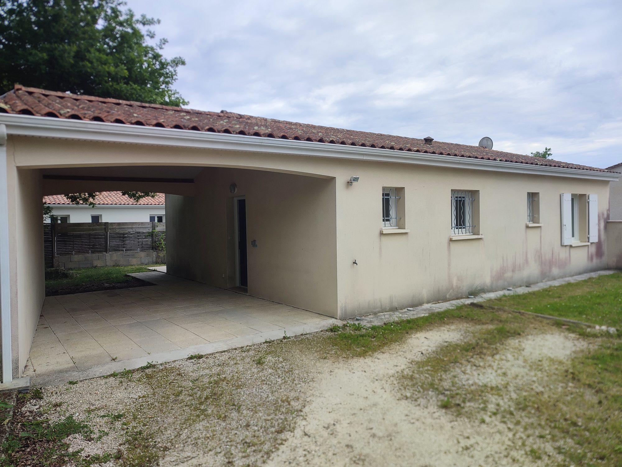 Très bien située dans une petite rue calme à proximité de tous commerces, services et écoles, belle maison contemporaine (2012) indépendante de plain-pied en très bon état et très lumineuse, accessible normes PMR (personne à mobilité réduite), comprenant : vaste pièce à vivre cuisine équipée/salon/salle à manger de 32 m² ouvrant sur le jardin, cellier, 3 chambres, salle d'eau, wc. Abri voitures. Terrain clos de 308 m².