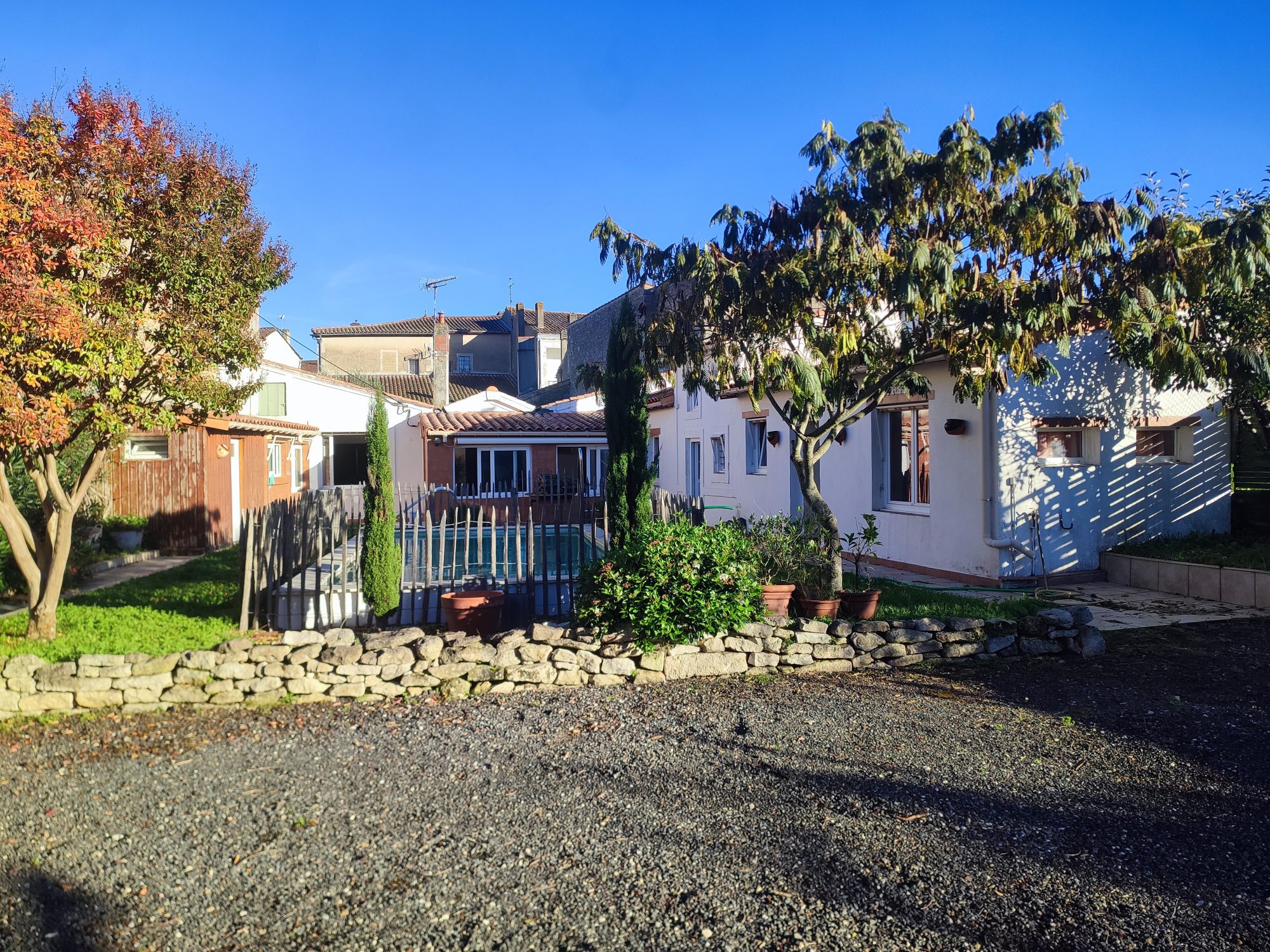 Idéalement située dans une petite rue très calme au coeur du centre-ville, avec tous commerces, écoles et services accessibles à pieds, maison ancienne de plain-pied très ensoleillée, rénovée avec beaucoup de charme comprenant : entrée, bureau, salon avec cheminée insert, salle à manger, cuisine aménagée, 3 chambres, salle d'eau/wc. Espace annexe attenant avec chambre et salle d'eau/wc. Dépendance type studio comprenant une pièce principale et salle d'eau/wc. Atelier. Configuration idéale pour maison familiale ou activité de chambres d'hôtes ou location touristique. Terrain sans vis-à-vis de 543 m² avec piscine.